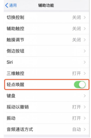 打開iPhone,依次點擊【設置】-【通用】-【輔助功能】,可以找到輕點喚醒并進行開啟或關閉。