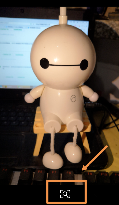 將手機對準需要識別的物體進行拍攝,拍攝成功,照片下方會出現一個放大鏡圖標,點擊即可進行搜索。