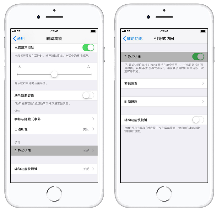 可以在「密碼設置」界面為「引導式訪問」設置密碼(支持觸控ID面容ID解鎖);并打開「輔助功能快捷鍵」;