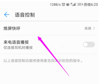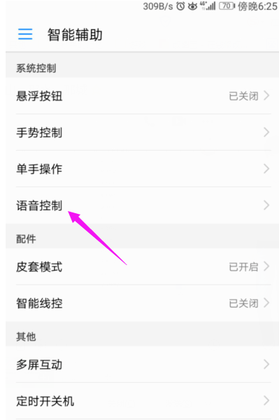 開啟步驟:點擊設置——智能輔助——語音控制——熄屏快呼