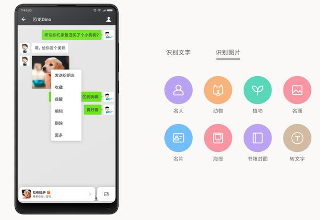 傳送門2.0中加入了AI圖像識別,長按提取出圖片中的文字、名片內容、識別植物/動物品種、名人面孔、中外名畫、電影海報、書籍封面等。例如,路邊上有一種花,你拍下來,長按識別就可以知道它的名字啦。