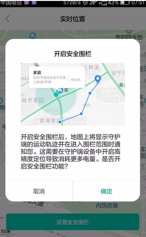另外還可以開啟安全圍欄,當(dāng)手機(jī)超出圍欄范圍就會發(fā)送通知。