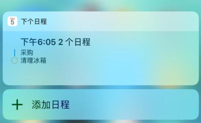 很多人習慣在手機日歷本中記錄日程安排,通過按壓日歷圖標,可顯示先一個即將到來的行程或者事件。如果提醒事項中的任務也快到時間了,也會在日歷的懸浮窗中顯示。
