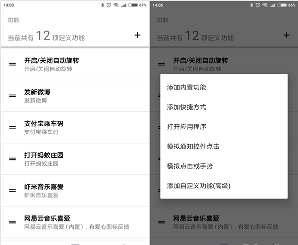 易按鍵可以把眾多可自定義的功能與按鍵的長按/單擊/雙擊/三擊進行綁定,可以完成諸如一鍵網易云音樂/QQ音樂等歌曲喜愛,一鍵支付寶/微信付款,一鍵發微博等功能。在很多時候,自定義按鍵都是相當有用的。