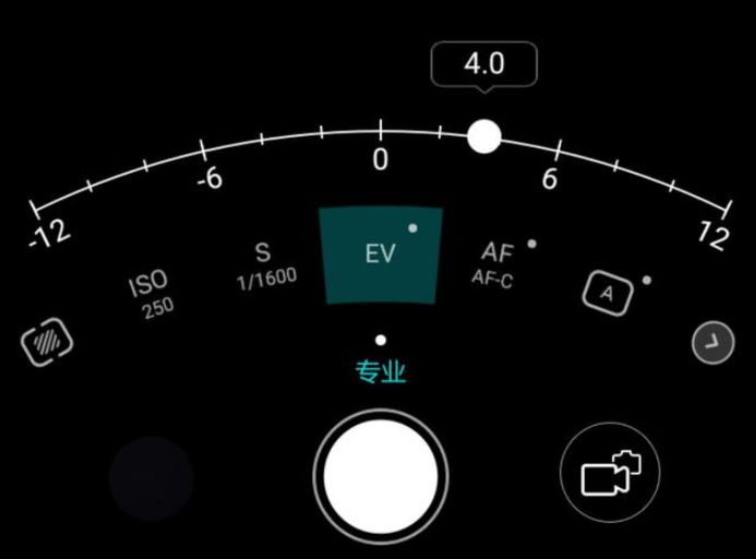 點擊專業模式,我們看到在相機快門按鍵的上方有一排參數。