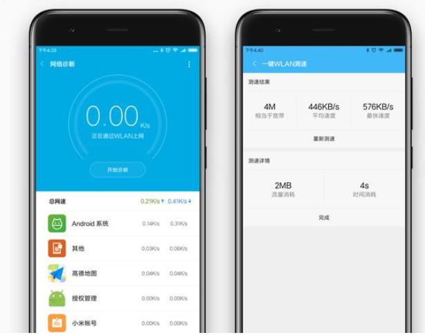 想要了解網(wǎng)速有多快,是否適合在線看視頻或是打游戲言,完全沒必要去下載額外的測(cè)試工具。在小米安全中心中提供了網(wǎng)絡(luò)診斷這一功能,它可以幫你核定當(dāng)前網(wǎng)絡(luò)狀態(tài)以及網(wǎng)速實(shí)測(cè)。