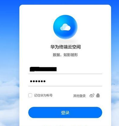 在電腦上打開華為官方網站,然后打開華為終端云空間,用手機上注冊的賬號密碼登陸華為終端云空間,如圖。