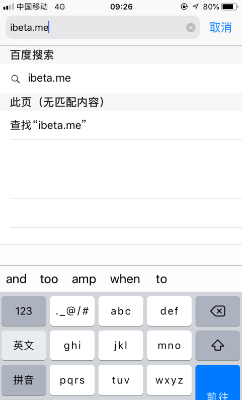 2、打開iPhone自帶Safair瀏覽器,網址欄輸入ibeta.me安裝下載描述文件,重啟后,可以安裝預覽版(網友推薦方式,不知是否可靠,請謹慎使用)。