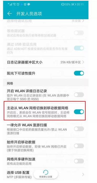 開啟這個功能后,系統(tǒng)將在WLAN信號較弱時,主動將網(wǎng)絡(luò)模式從WLAN網(wǎng)絡(luò)切換到移動數(shù)據(jù)網(wǎng)絡(luò),跟WLAN+部分功能類似。