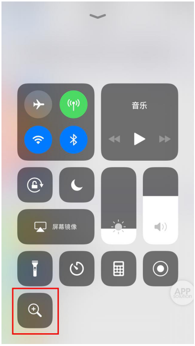 手機上拉“控制面板”,底部就會出現放大器的圖標。