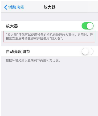 除了“連按三次主屏幕按鈕”可以開啟,機智的小編還發現了放大器的另一個快捷打開方式。