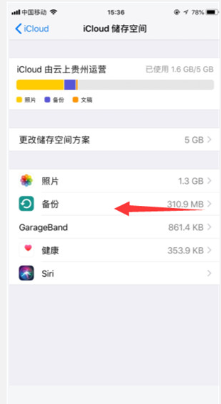 第三步:在此界面選擇【備份】查看iCloud里有幾個備份文件