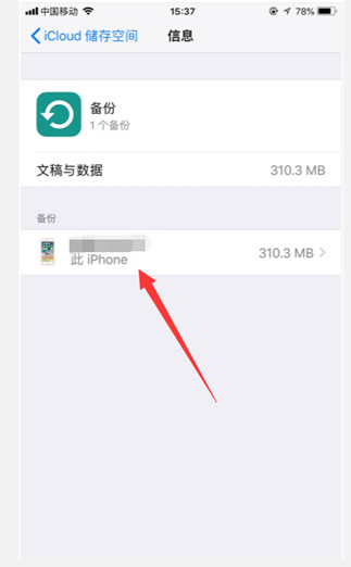 第五步,點擊【此iphone】可以查看之前備份了哪些數據內容,是否有微信的備份數據,或者其他數據類型。其中包括上次備份的時間和備份大小也是可以看到的。