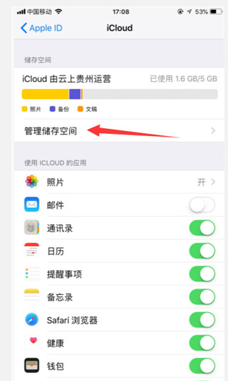 第二步:在iCloud主界面里點擊【管理儲存空間】