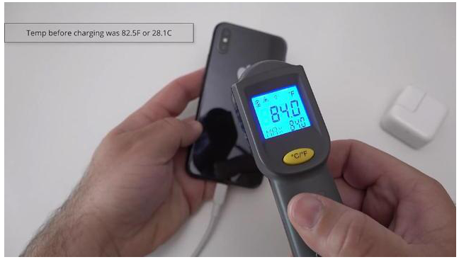 外媒做了一個(gè)測(cè)試,將iPhone X采用有線和無(wú)線兩種方式各充電十五分鐘,然后來(lái)測(cè)量?jī)煞N充電方式的機(jī)身溫度,因?yàn)檫^(guò)高的溫度會(huì)對(duì)手機(jī)電池的壽命有著不可逆轉(zhuǎn)的影響。