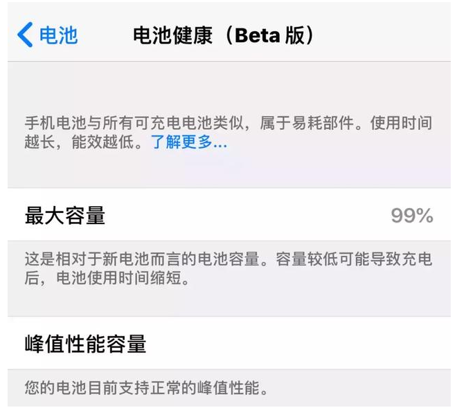 之前有很多使用6、6s、7的朋友因為升級了新版本系統遭到了CPU的限制使用,致使系統變得非常卡頓,在這個版本中,大家可以打開電池健康功能,檢測自己的電池健康程度,如果已經低于60%,那么建議最好去蘋果官方店更換新的電池,以保持系統的運行速度。