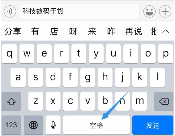 當我們打字結束、要標句號的時候,可能你還會習慣性的點鍵盤左下角123,呼出符號欄,找到句號。但是現在告訴你,不需要了,這太麻煩了!我們只需要點兩次空格鍵就好,句號就會自動打出來。