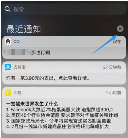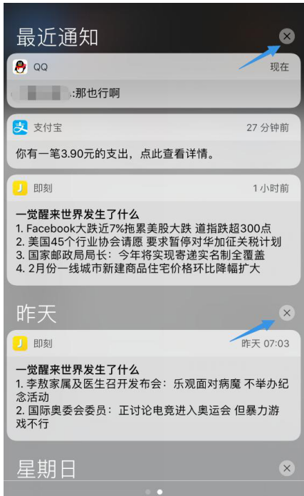 我們只需要用力按壓右上角的×號,這時會彈出清除所有通知,然后直接點擊清除。iPhone會有一個刪除通知的動畫,非常炫酷。最后,所有的通知就在一瞬間刪除,看著特別的舒暢。