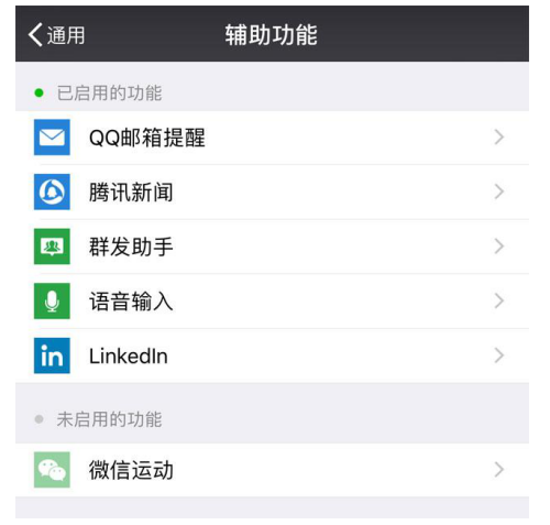 第一個(gè),打開(kāi)微信設(shè)置,在通用里找到“輔助功能”,根據(jù)我們的需要,關(guān)閉不常用到的功能。