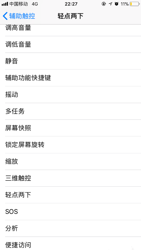 3、往下拉,我們選擇“敲兩下”,這就是手勢操作的一種。