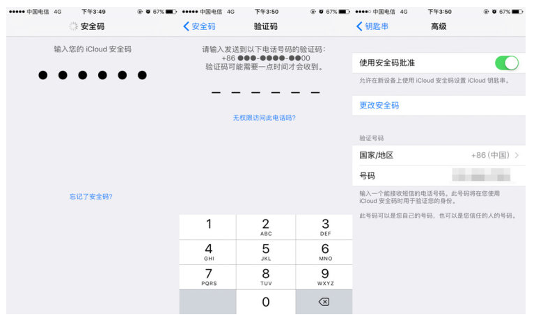 iCloud安全碼是一個獨立的密碼,你可以自行添加,或者使用「鎖屏密碼」,這可能是您需要記住的“第三個”密碼。