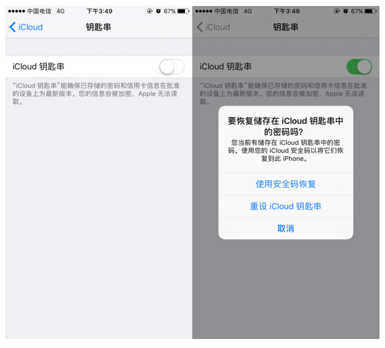 3、iCloud 登錄密碼與鑰匙串安全碼