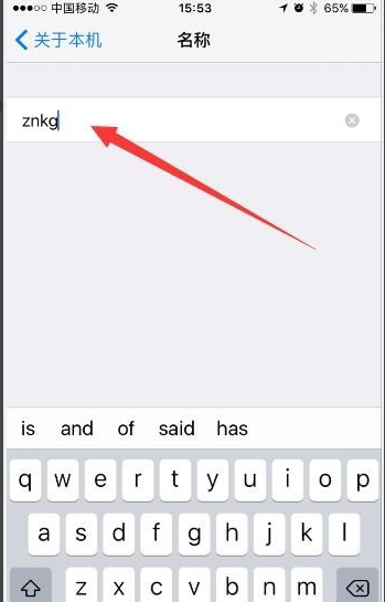 7、進入“名稱”界面,將iPhone6修改成znkg,即可設置成功。