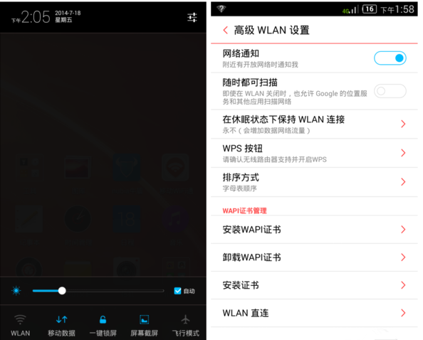 很多手機(jī)都內(nèi)置了開啟關(guān)閉WiFi和藍(lán)牙功能,另外還可以將4G網(wǎng)絡(luò)調(diào)至2G網(wǎng)絡(luò)模式,要知道4G模式下手機(jī)耗電極快。