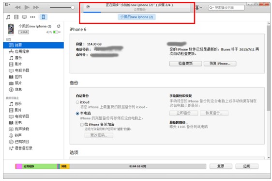 2、在電腦上安裝并打開(kāi)iTunes軟件,點(diǎn)擊iTunes窗口左上角的iPhone小圖標(biāo),然后選擇“本電腦”并點(diǎn)擊“立即備份”按鈕。如果彈出窗口詢(xún)問(wèn)是否備份應(yīng)用程序的話(huà),請(qǐng)點(diǎn)擊“不備份應(yīng)用程序”,如果還彈出窗口詢(xún)問(wèn)是否對(duì)備份數(shù)據(jù)加密的話(huà),請(qǐng)點(diǎn)擊“不加密”。