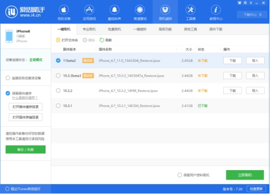 2、除了通過安裝描述文件OTA升級之外,可以直接使用愛思助手一鍵升級到iOS11 Beta2,愛思助手(愛思助手下載地址:http://www.survivalescaperooms.com/soft-1378.html)現已支持iOS11 測試版刷機,支持“保留用戶資料刷機”升級到最新iOS11系統。