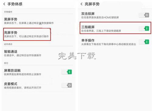 OPPO R11的coloros系統(tǒng)中還加入了個性化的三指截屏功能,具體操作方法是,進入 設(shè)置 -> 手勢體感 -> 亮屏手勢 -> 開啟“三指截屏”,開啟此功能后,在任意界面,可以通過三指上下滑動,快速截屏。