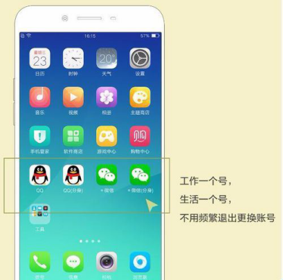 一部手機兩個微信兩個QQ同時登錄,可以隨心更改分身名稱,工作的時候用工作號,下班的時候就有生活號,完美兼顧。
