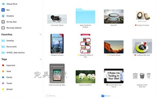 此次wwdc2017大會上蘋果正式發布了ios11系統,最亮眼的升級就是在ios中加入了文件管理功能,對于一向比較封閉的ios來說,改變不可謂不大。蘋果iOS11 Files文件管理器是蘋果系統最新推出的一款軟件,相信很多的玩家都非常的喜歡,那么,這款工具到底有什么功能,給用戶的生活可以帶來哪些方面的便利,下面就看下詳情,希望大家喜歡。