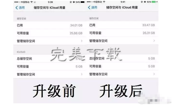和今年3月推送的iOS 10.3第一個版本相比(由于使用了Apple File System(APFS)文件管理系統,系統空間多出來2GB多),本次更新后剩余空間雖然沒有大變,但還是多出來幾百MB,升級還是非常值得的。