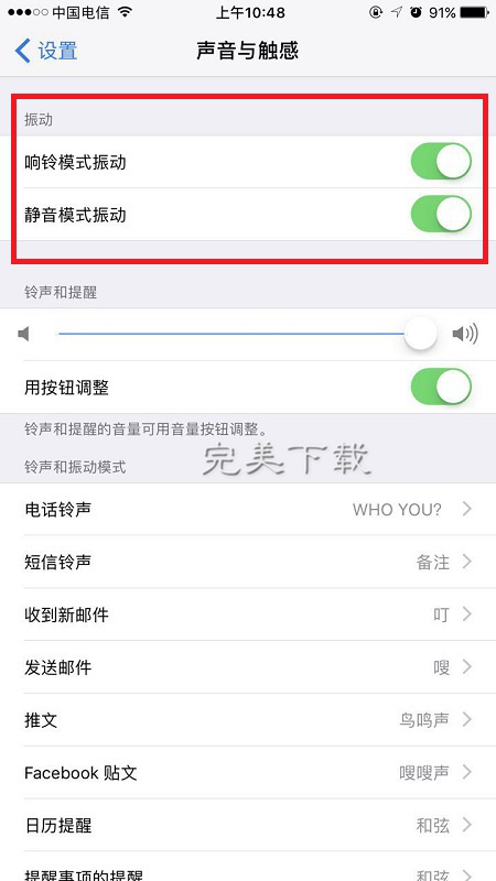 2、將【響鈴模式振動】以及【靜音模式振動】打開即可。