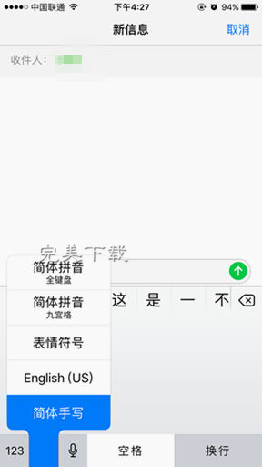 五、設(shè)置完成后,我們就可以去試試iPhone 7的手寫輸入法功能(下載輸入法工具,訪問http://www.survivalescaperooms.com/heji/pinyinshurufa/)。