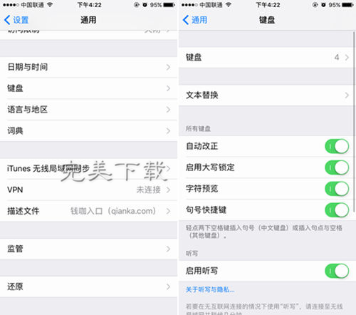二、然后在通用設(shè)置界面中,依次點擊進入【鍵盤】----【鍵盤】設(shè)置頁面,如下圖: