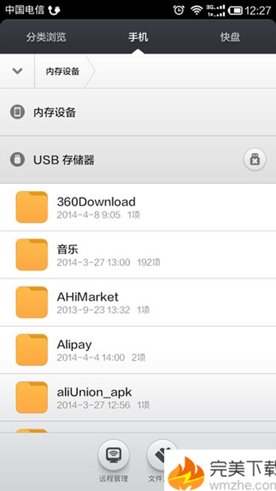 4、點擊進去文件管理器,選擇USB存儲器;