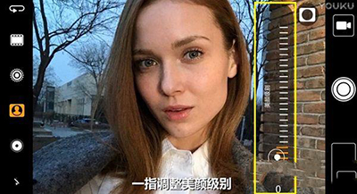 華為P10人像模式支持手動(dòng)調(diào)節(jié)美顏級(jí)別,最高10級(jí),級(jí)數(shù)越高,美顏效果越好,如下圖所示。