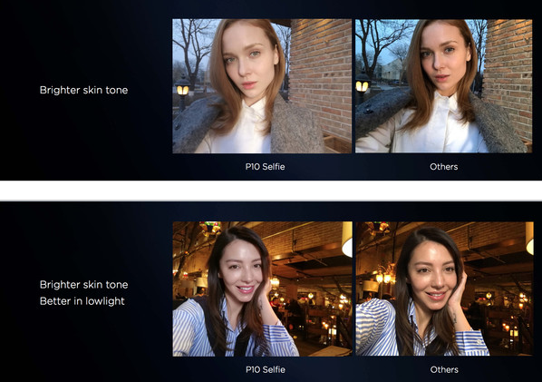 與其它手機(jī)對(duì)比,華為P10畫(huà)面中的人物膚色明顯更為明艷照人,即使在光線不足的弱光環(huán)境中拍攝,也能取得很不錯(cuò)的自拍效果。