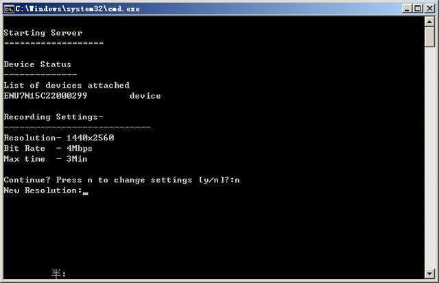 3、雙擊 AndroidRecordScreen 以運(yùn)行這個(gè)小程序,這時(shí)電腦彈出一個(gè)這樣的窗口: