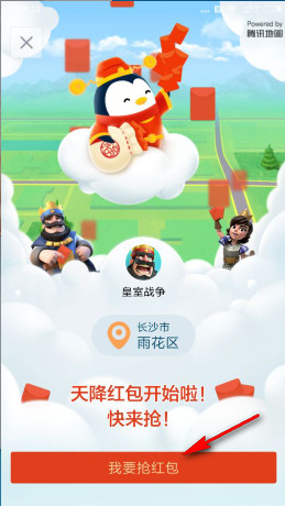 下拉天降紅包的頂部吊墜,進(jìn)入qq天降紅包,然后點擊我要搶紅包