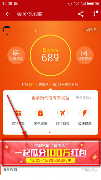 淘氣值位于“我的淘寶”——“會員中心”,大家可能沒有在意他的存在,淘氣值是基于過去12個月在淘寶上網“購買、互動、信譽”等行為,綜合計算出的一個分值,超過1000分的會員就是淘寶的超級會員。尋淘氣值尾號有緣人就是看你的淘氣值有多少來玩的,只要找到淘氣值尾號和你一樣的人就能瓜分紅包啦!想想就心動呢!哪怕只找到1個人也可以一起瓜分紅包哦!