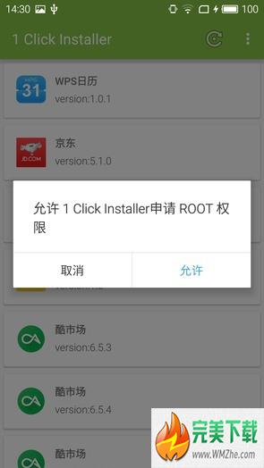 1 Click Installer翻譯過來簡單直接,就是一鍵安裝器的意思,打開 1 Click Installer,1 Click Installer會自動掃描出當前設(shè)備中的apk文件,按下屏幕右下方的紅色按鈕,就可以一鍵安裝選中的apk文件了,支持多選。但在這個過程中,操作是需要root權(quán)限的,所以想要一鍵安裝apk,還得先root。Root完成后就可以一鍵安裝了。