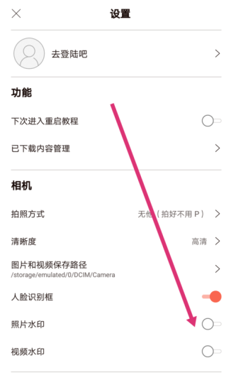 設置里面有照片水印、視頻水印,點擊關閉。這樣你拍的照片就不會有水印了。