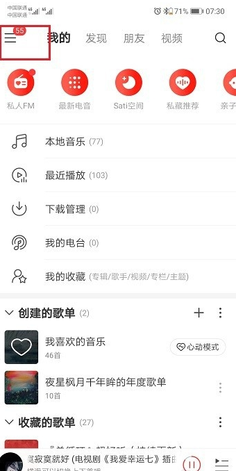 第二步打開網易云音樂,點擊列表圖標,如下圖所示:
