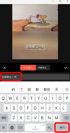 輸入視頻上方的字幕內(nèi)容,也可設(shè)置“字幕樣式”,然后點(diǎn)擊“換行”,大概按8次左右換行鍵,次數(shù)根據(jù)視頻大小、字體大小而定。