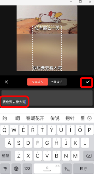 輸入視頻下方的字幕,然后點(diǎn)擊“對勾”。