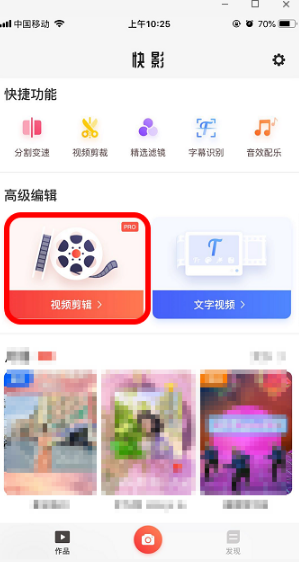 打開快影,點(diǎn)擊“視頻剪輯”。