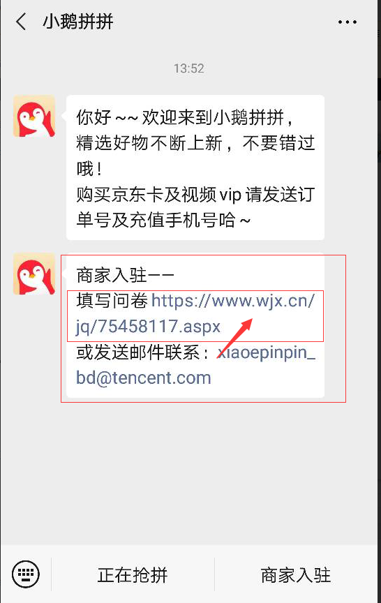 第一步:微信搜索“小鵝拼拼”公眾號(hào),點(diǎn)擊關(guān)注。